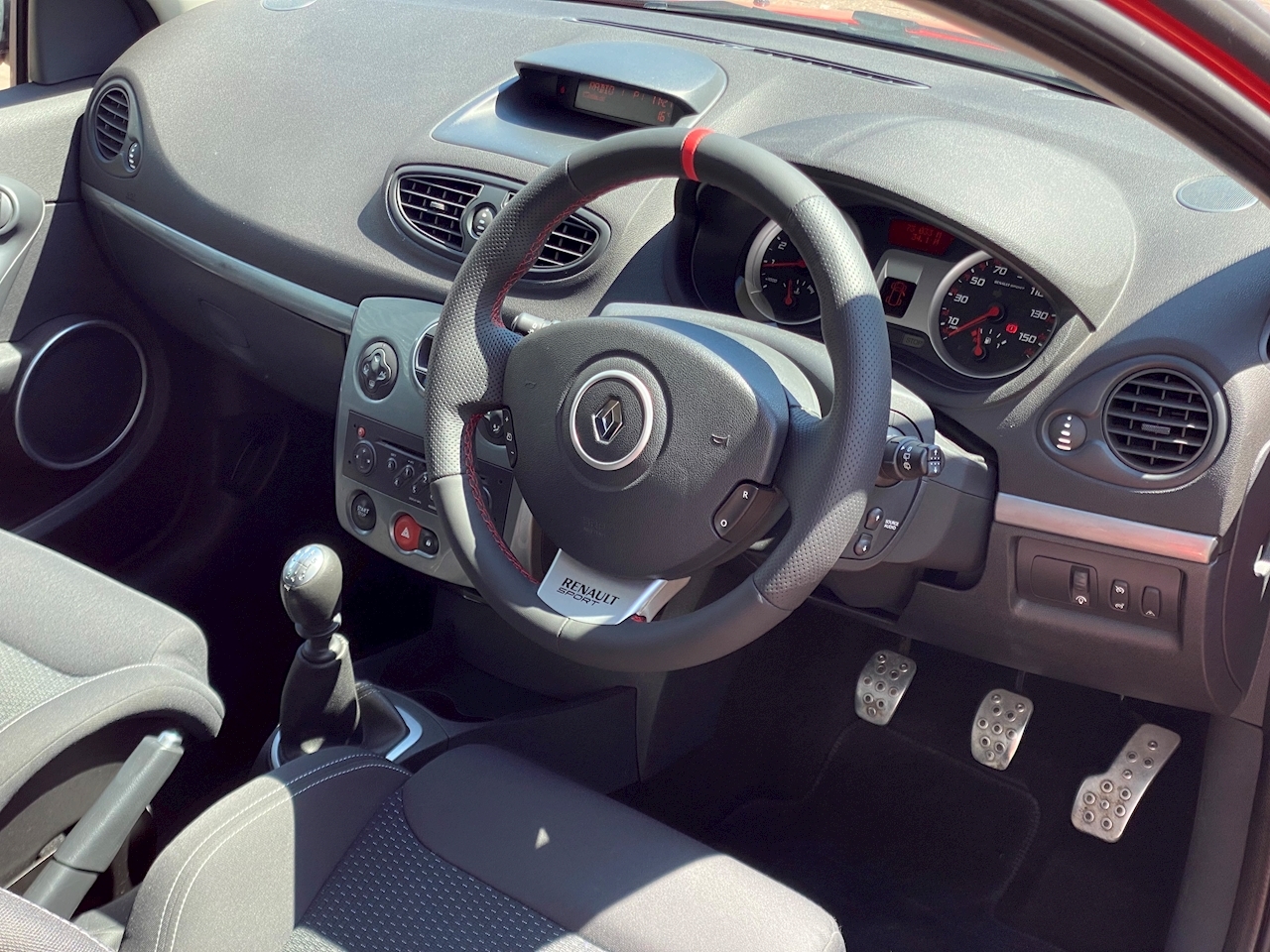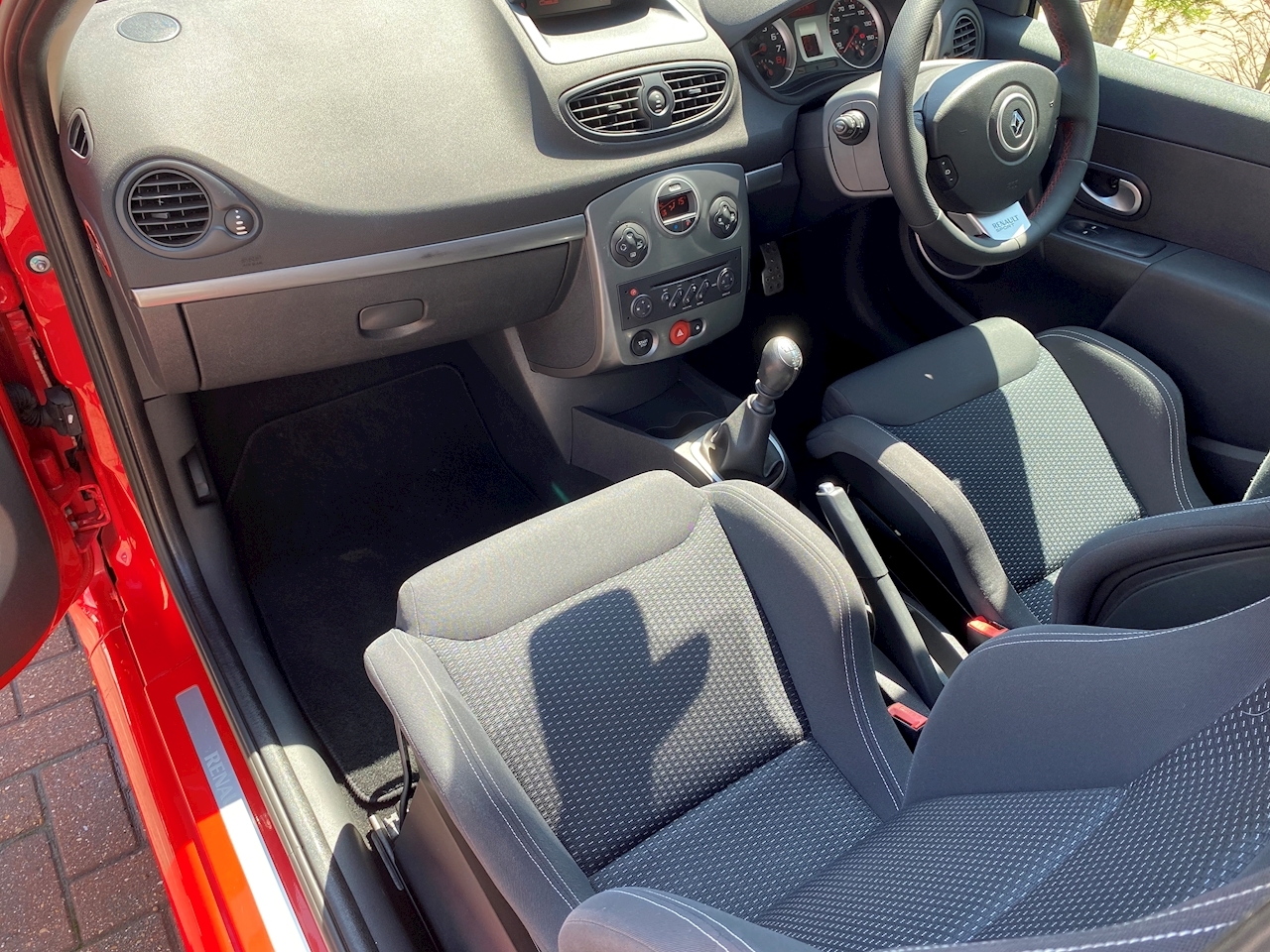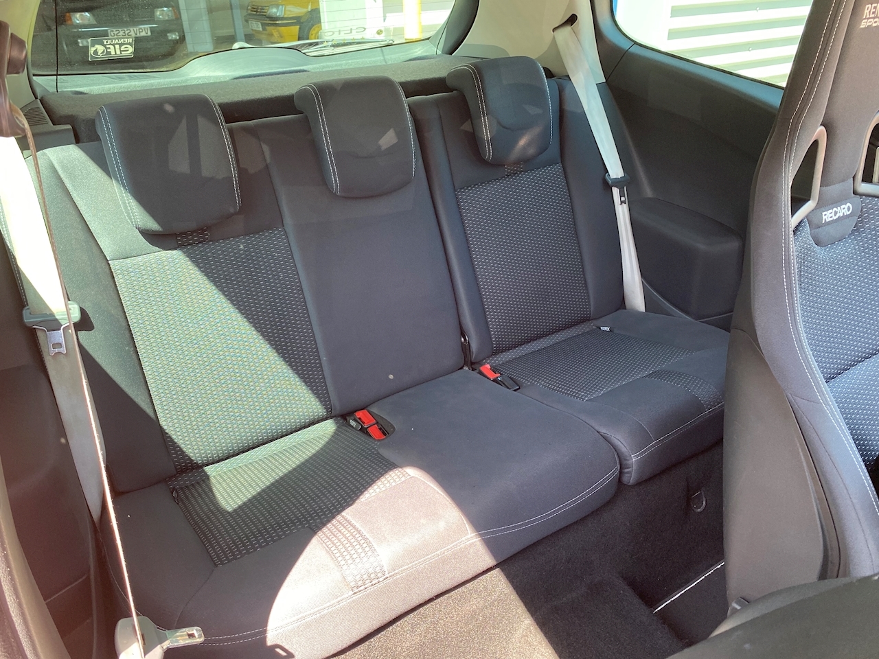 The specification is excellent and is as followed, Unmarked Renaultsport Recaro Seats, Automatic Xenon Projector Headlights, Keyless Entry and Start, Electric Folding Mirrors, Factory Rear Privacy Glass, Climate Control, Air Conditioning, Cruise Control, CD Player, FM Radio, Steering Column Audio Controls, Heated Rear Screen, Trip Computer, Anthracite Grey Alloy Wheels, Red Brembo Brake Calipers.
