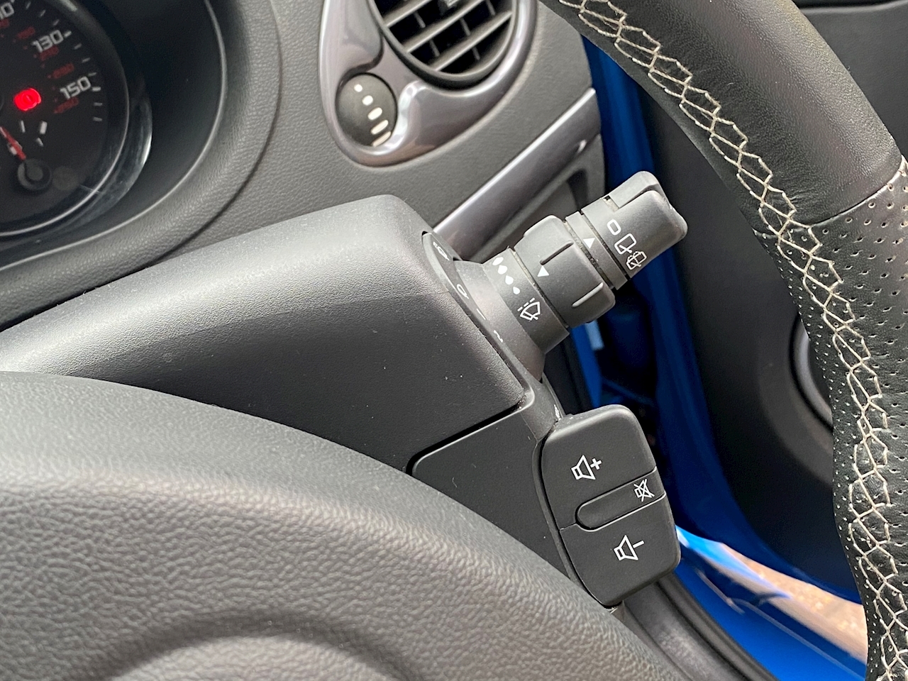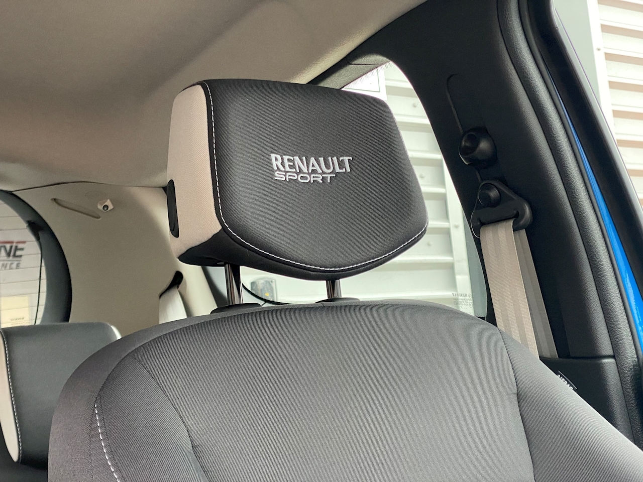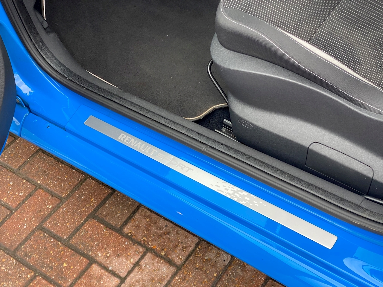 The specification is as followed, Cup Spoiler, Freshly Powdercoated Gloss Black Wheels, Cup Packed, Red Brembo Brake Calipers, Cruise Control, Keyless Start, Electric Windows, Electric Mirrors, Renaultsport Floormats, Automatic Headlights, Steering Column Audio Controls, CD Player, Aux Input, Heated Rear Screen, Climate Control, Air Conditioning.