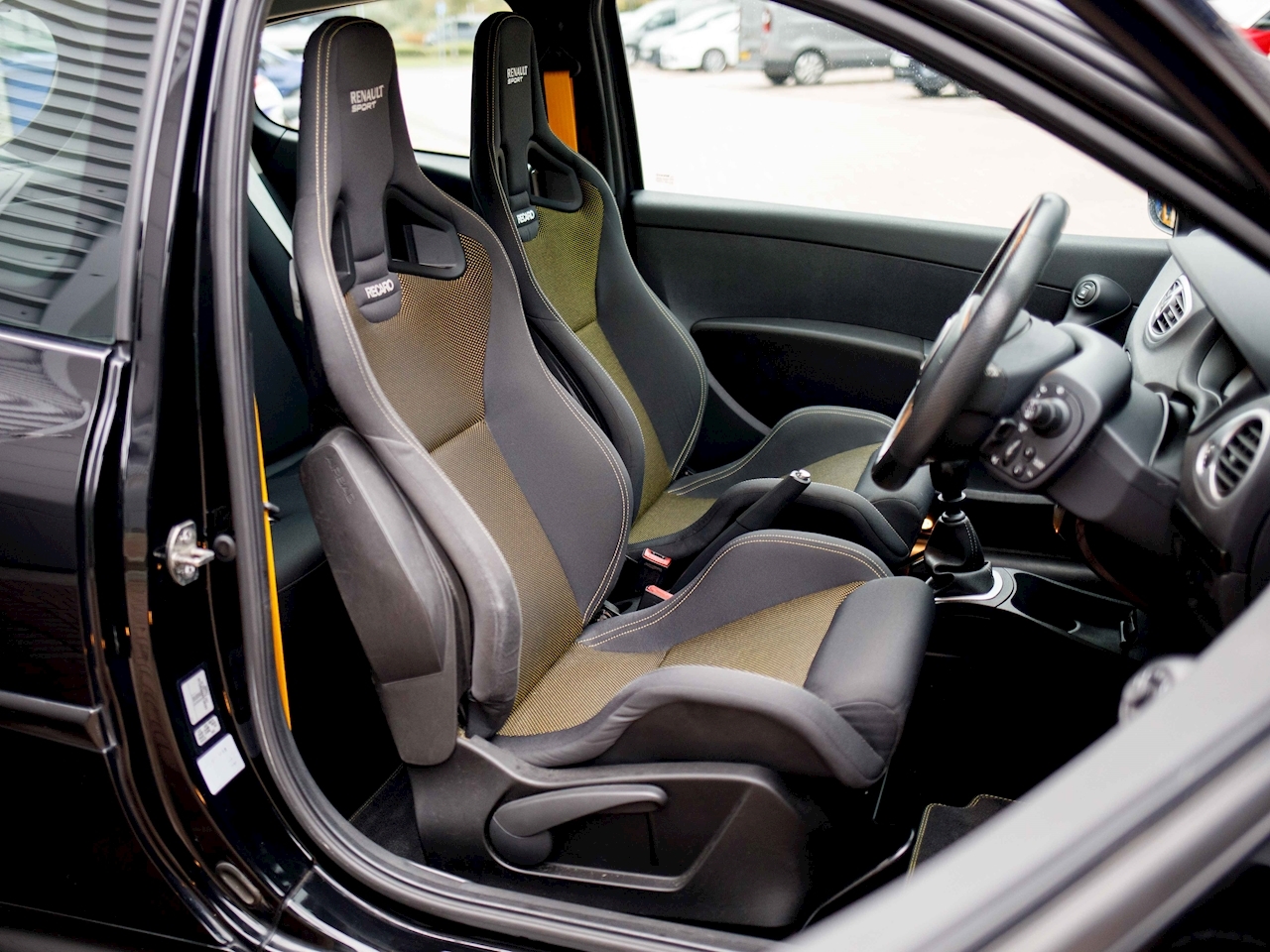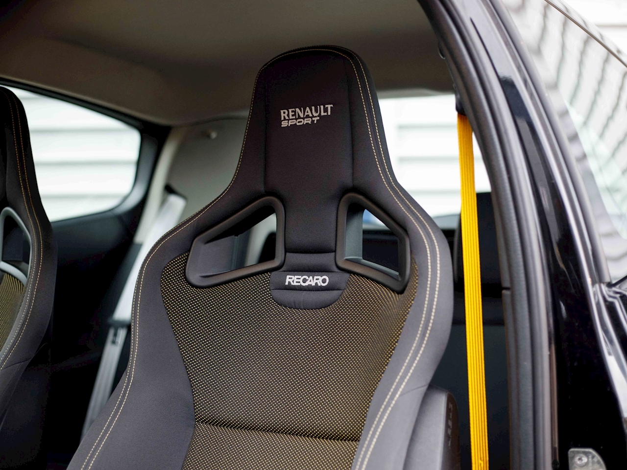 This particular Clio 200 has excellent specification as followed, Yellow Dot Recaro Seats, Climate Control, Bluetooth Phone & Audio Streaming, Automatic Lights, Automatic Wipers, Air Conditioning, Electric Windows, Electric Mirrors, Cruise Control, Heated Rear Screen, CD Player, Keyless Entry & Start, Anthracite Grey Alloy Wheels, Gloss Red Brembo Brake Calipers, Steering Column Audio Controls, Yellow Front Seatbelts.